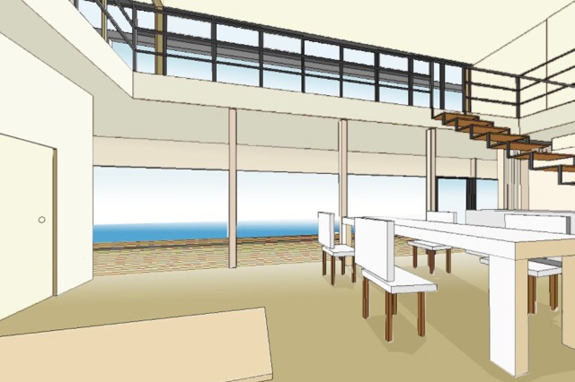 外観からは想像し得ない、海と一体になれる内部空間がこの家の目指すところです。