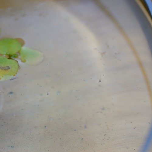 生き物を扱う上でその環境を整えるのには中々大変な労力が必要です。その中では、めだかは非常にシンプルに容器と水と餌を揃えれば大丈夫だったりします。IKEAで500円ほどで購入したガラス容器に水道水を日光に晒しカルキ抜きをすませた後にいれ、ホームセンターで購入した数百円のフレークをあげる。専用の水槽や濾過機にポンプともちろん揃えればより良いのかもしれませんが、少数の飼育であれば水中の酸素は水面より取り込まれる分で足り、濁ってきた頃に水を半分入れ替えれば濾過器がなくても元気に育ってくれます。少しの手間で設備の代用は可能なのです。そしてその手間が暮らしの中でのリズムとなってくると、水を入れ替える苦労ではなく成長を確認する楽しみの時間となってきます。