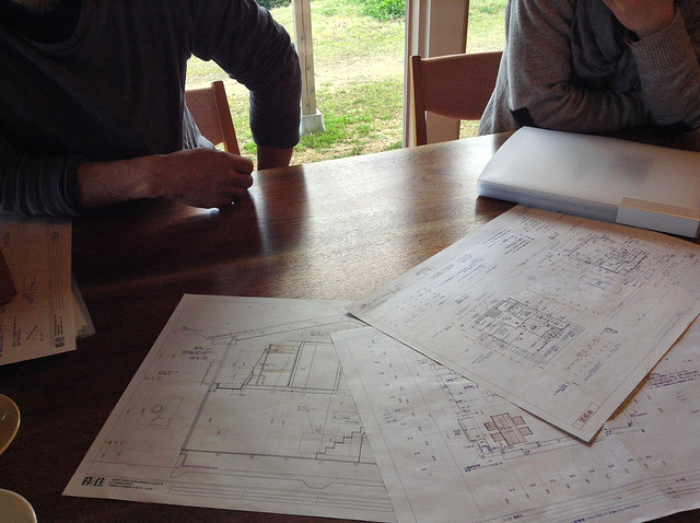 作業場を少し見学させていただいた後、早々に家具の打合せを始めました。計画ではついつい夢が膨らみます。ダイニングテーブル。ソファ。ベッド。。。予算あってのこと、何もかもを作る訳には行きませんので、どんな方向で見せるのが良いのか? 模索のディスカッションが続きました。