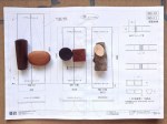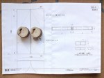 届いたポチつまみを図面にならべながら、どこにどれを使おう。悩みに悩んで、決定です。