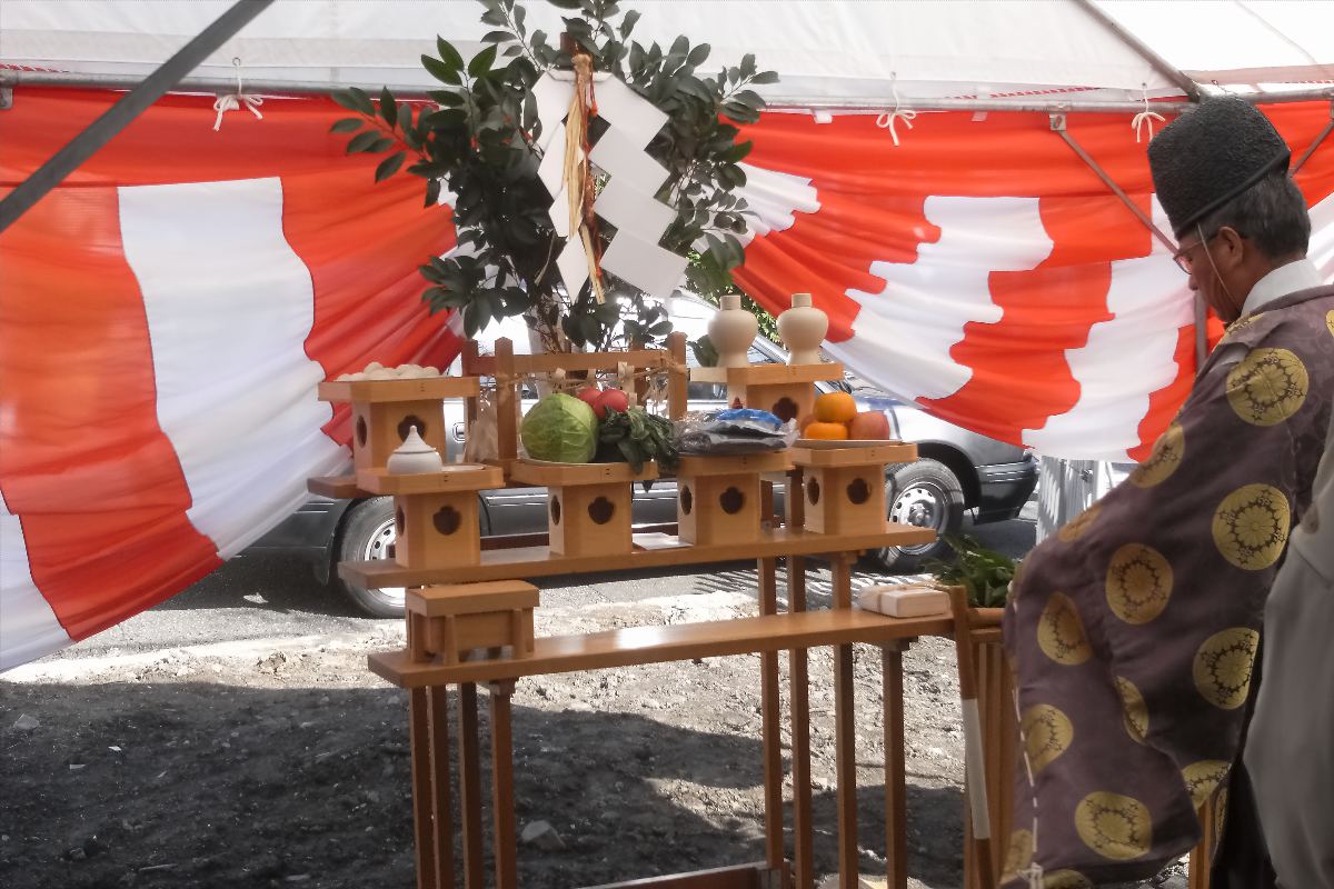 今回は施主からの希望で行われましたが、最近、地鎮祭を執り行う物件が少なくなりつつあるように思います。