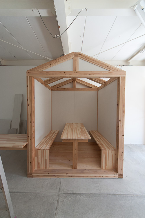 ボックス席は木フレームにモイス壁の小屋型となっています。