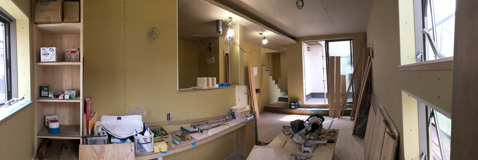 投稿日: 2018年7月17日 投稿者: 庄司洋大工工事は終了間際 大工工事が終了間際の様子。(クリックで拡大) 大工工事がほぼ終了に近づいています。造作の棚なども取りついて、ほとんど家の形は出来上がっています。この後はクロス工事や塗装工事など仕上工事にバトンタッチです。 屋根工事も樋の取付けに掛かり始めまています。 足場に隠れていますが、外壁材が格好良いです。 外壁も貼り終え、足場の撤去も間近になりました。 共有: クリックして X で共有 (新しいウィンドウで開きます) X Facebook で共有するにはクリックしてください (新しいウィンドウで開きます) Facebook クリックして Pinterest で共有 (新しいウィンドウで開きます) Pinterest クリックして Tumblr で共有 (新しいウィンドウで開きます) Tumblr