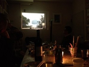 さて3枚目の写真は事務所にて主催したスライド会。ちょうどビラ・マラパルテ邸の窓から写した風景を映写機にて壁に映し、ピクチャーウィンドウが出来上がりました。イタリアの風を感じていただけたかな?