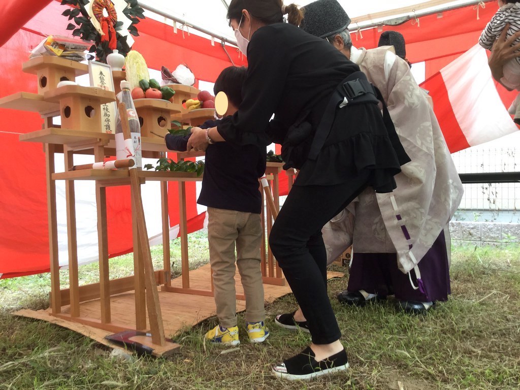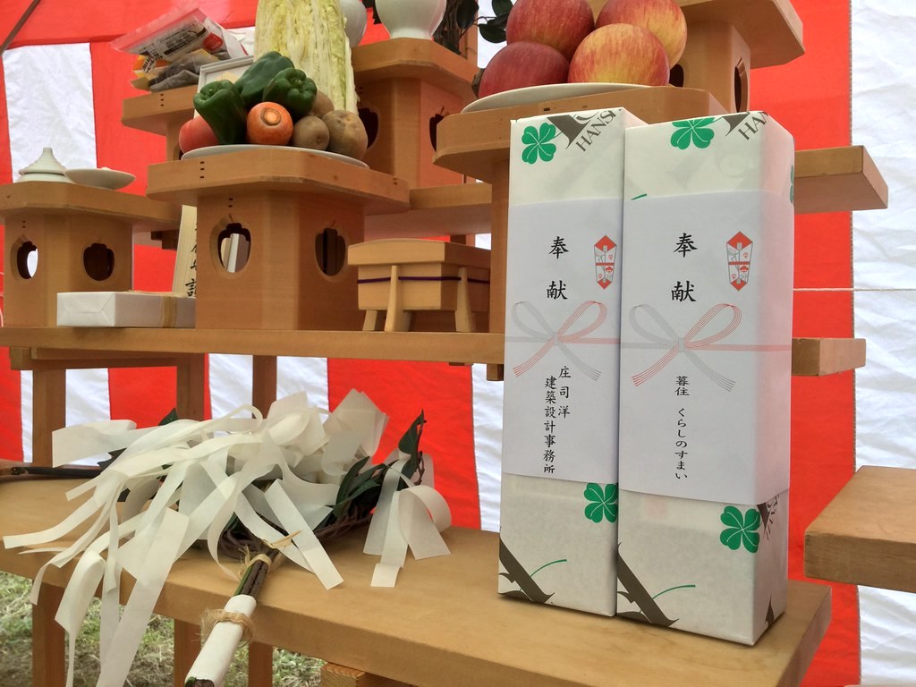 日曜日の朝は少しくもり空でしたが、無事に地鎮祭が済んだところです。