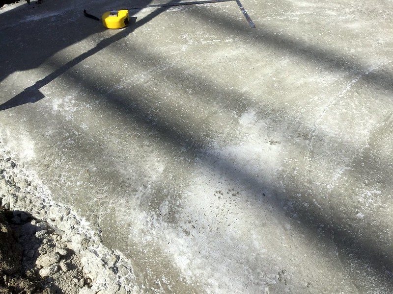今回の基礎は少しばかりシビアな寸法もあるので、監督さんと打合せ兼ねて現場の確認に行きました。すると、そこに猫の足跡を見つけてしまったところです。