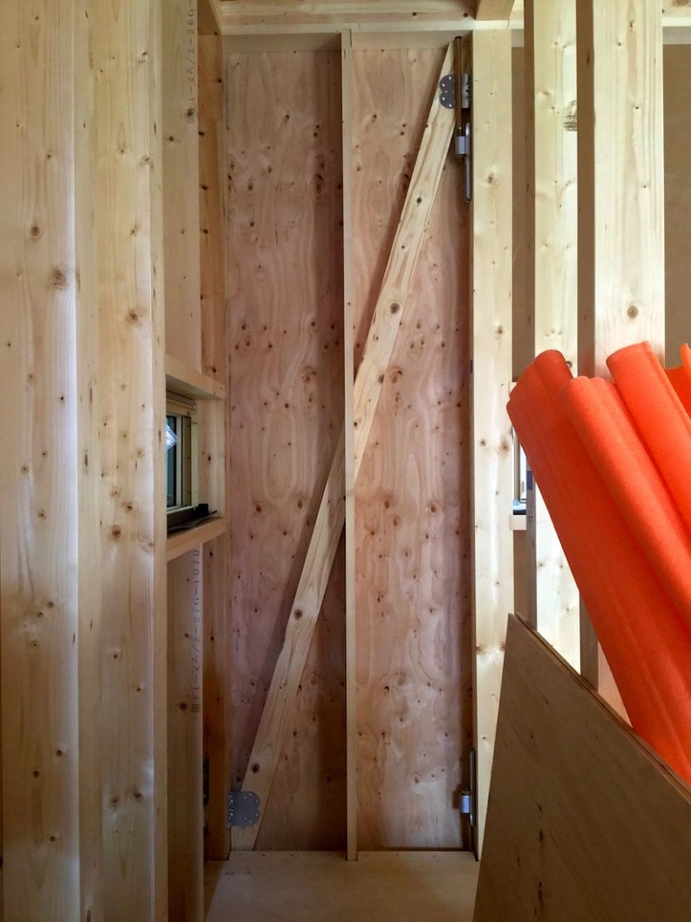 サッシ取付けの様子は先週のことですが、塞がっていた壁に窓の穴が空いて、中に射し込む明かりの様子も見て取れます。なんとなく意図していたイメージになりそうで、これもひと安心しました。