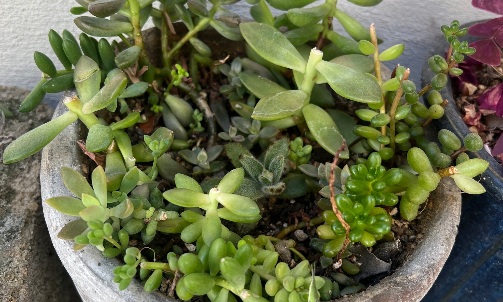 前回の自分の投稿から1年半近く過ぎましたので、多肉植物の寄せ植えのその後を。 植えた直後の心配を余所に、スクス …
