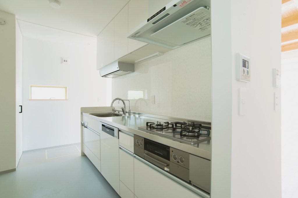 完成後しばらくして伺うと、実は迷いましたが自分のスタイルにはこうしておいてやはり良かった。来られた方からは、キッチンが見えないことで生活感が現れずオシャレに感じてもらえる。と施主様の声。実際に拝見すると回廊的に抜けられることで、充分使えるキッチンのあり方と感じます。