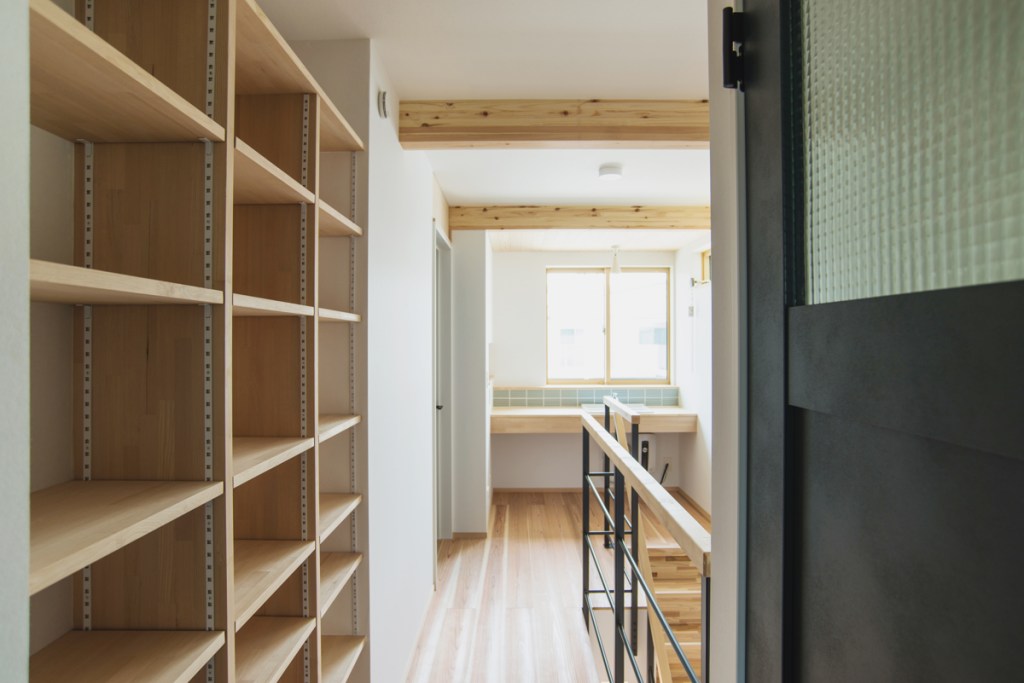 キッチンの配置が特徴的です。リビングダイニングはひとつの空間ですが、キッチンは両袖から入れることができる壁で区切られています。普段はオープンなキッチンを望まれることが多いので、打合せでは小窓で繋げることも提案しました。ですが施主様は、最終的には完全クローズすることを決められました。